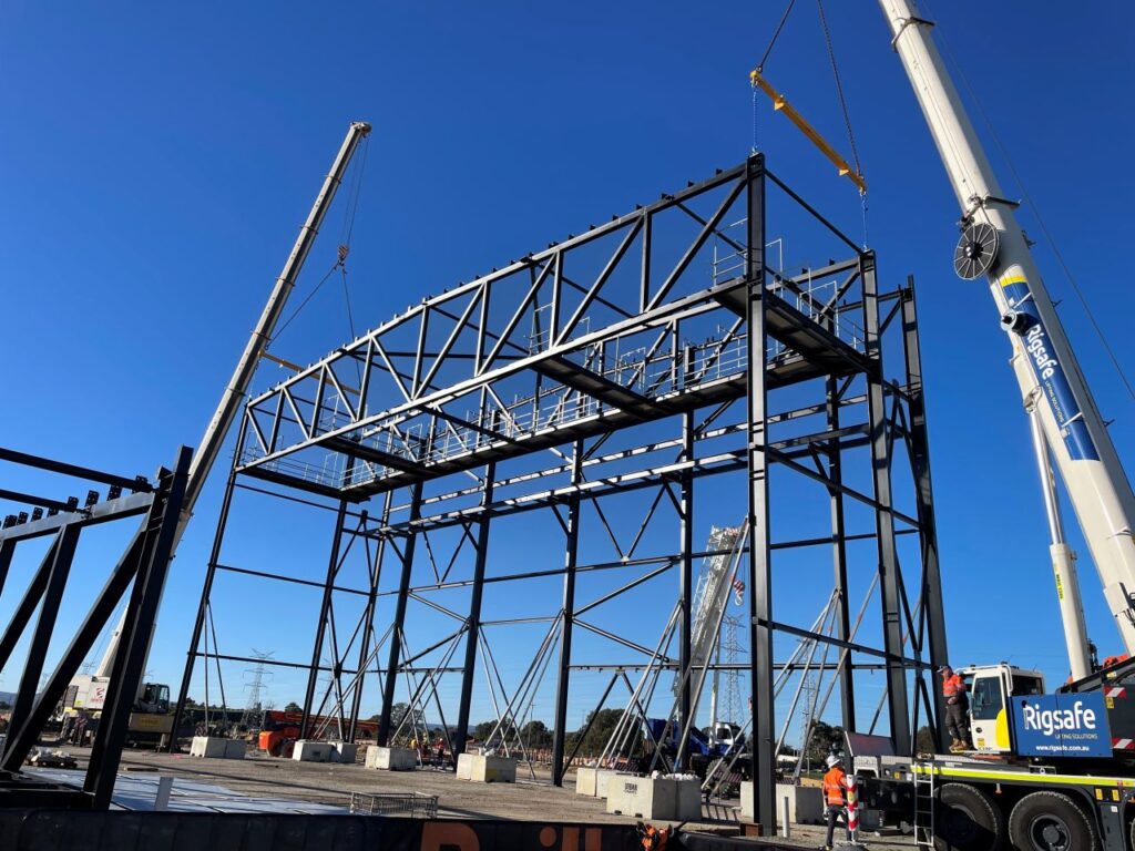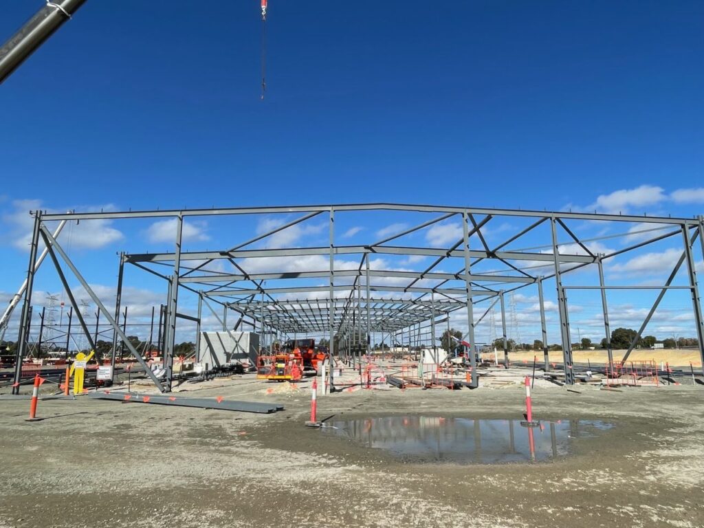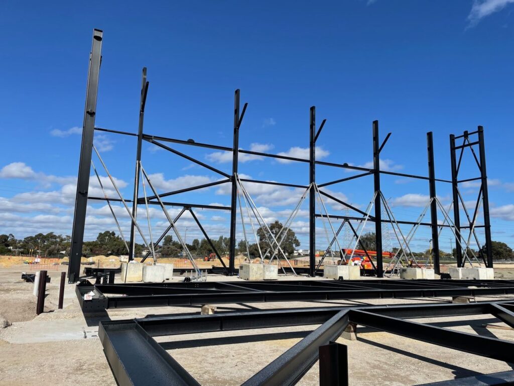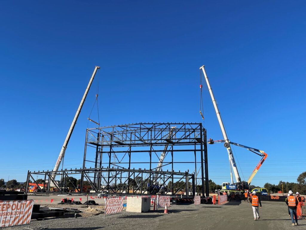 Construction of the Perth Film Studios reaches new heights! A major milestone was reached on the State Government’s $233.5 million Perth Film Studios project in Malaga. On 16 July 2024, the first trusses for sound stages were lifted into position. The 5m deep trusses span 36m, with the bottom chord of the truss located 15m above ground level. A series of interconnected walkways span from truss to truss, creating a platform from which technicians will operate lighting, camera, and audio equipment during film production. The scale of the sound stages and the film studio precinct is starting to become apparent as the large steel frames are erected. It is always very rewarding witnessing a structure progress from initial concept, to detailed design and finally to real-life construction.