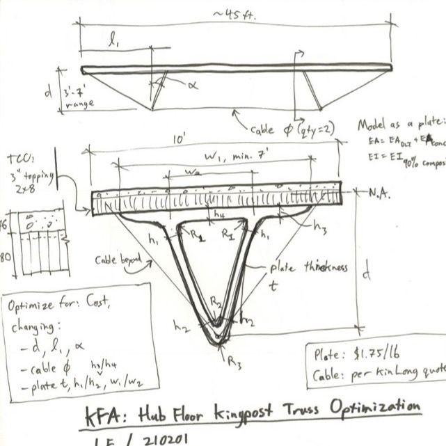 Development of a unique hybrid structural solution combining timber, steel, and concrete elements to achieve a 45ft clear span floor system for museum application, demonstrating innovative sustainable construction techniques.