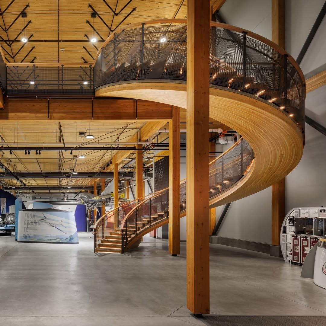 Development of a unique hybrid structural solution combining timber, steel, and concrete elements to achieve a 45ft clear span floor system for museum application, demonstrating innovative sustainable construction techniques.